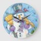 Cute Animals Building a Snowman for Christmas Large Clock