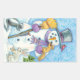 Cute Animals Building a Snowman for Christmas Rectangular Sticker