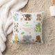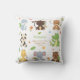 The front and back of this new baby announcement throw pillow for the nursery has cute animals. Personalize the front with name and birth information. Perfect for a baby boy or girl.