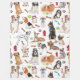 Adorable dog pattern with pows print, bones, balls, rope, and fire hydrant. You can see that cute little dogs has scarfs, bandanas, hays, bow ties, and glasses