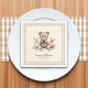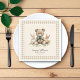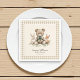 Create a memorable rustic-chic ambiance at your baby shower with these charming napkins. The design showcases a sweet watercolor teddy bear surrounded by a bunny and fox, nestled within a delicate beige gingham border. Perfect for adding a touch of elegance and whimsy to your tablescape, these personalized napkins are ideal for a woodland-themed celebration. They are sure to be a hit with guests, adding a special detail to your event.