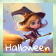 Cute Animated Flying Witch Window Cling