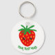 Cute animated happy strawberry fruit keychain. Custom key chain for kids and adults. Add your own custom name or quote.