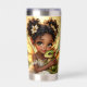 An adorable African-American anime fairy holding her chibi baby dragon tumbler.
