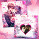 Cute anime boy and girl couple embracing surrounded by musical notes and hearts in purple and pink. Cute personalized Valentine's Day card for the couple that loves anime! Add your photo and change your text in the personalize area.