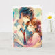 Adorable couple cuddling. Anime boy and girl watercolor ai art. Valentine's Day card. You can customize the text on the inside.