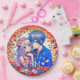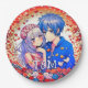 Adorable anime boy and girl couple bride and groom with red and blue flowers and hearts wedding paper plates.