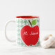 Cute Apple on Sea Green Houndstooth Two-Tone Coffee Mug