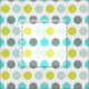 Cute pattern of aqua blue, mint, yellow and gray polka dots.