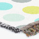 Cute pattern of aqua blue, mint, yellow and gray polka dots.