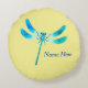 Cute as a Bug Blue Green Dragonfly on Light Yellow Round Pillow
