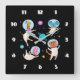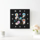 Cute Astronaut Animals Floating in Space Square Wall Clock
