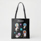Tote bag with an image of astronaut animals in see-through helmets floating in space. Giraffe, mouse, cat & rabbit. So adorable and fun.