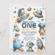 Cute Astronaut Cat Blast Off Space 1st Birthday Invitation