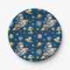 Cute Astronaut Cat Space Galaxy Pattern Navy Blue Paper Plates