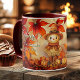 Mug featuring a cute doll in a fall scene with colorful leaves. Beautiful for any day in autumn, an autumn birthday or Thanksgiving.