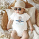Personalize this cute baby bodysuit easily and quickly. Simply click the Edit Using Design Tools button to further edit the text, change font styles, font colors, move, resize and delete images. Featuring a cute baby bear riding a blue airplane. Perfect outfit for baby's 1st birthday. Matching items available in store. (c) Somerset Fine Paperie by The Happy Cat Studio.