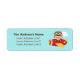 A colourful and cheerful address label design which features a cute boy in aviator outfit of big goggles and hat. He is waving his hand happily as he flies a little red and yellow airplane among the clouds. For kids who love aeroplanes and aviation related things. Personalise with address.