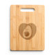 A cartoon style avocado in a heart. Custom wooden cutting boards for avocado lovers.