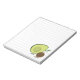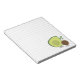 An avocado food notepad with the smiling characters of an avocado and avocado pit on white, lined, paper