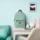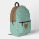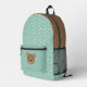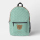 An adorable bear illustration takes centre stage on a background of teal blue and white polka dots. Easy to personalize with a name.