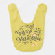 Beautiful baby bib quote from Ephesians 2:10 "You are his masterpiece" with a yellow background color and reversible with peach brownish color with beautiful butterflies. Design © by Nayda Liz Rivera