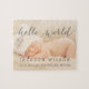 Cute Modern Baby Birth Photo Announcement Puzzle | Silver Gray Glitter Script. Elke Clarke Designs ©. More styles available in our shop. Glitter (printed photo effect) typography overlay with the words "hello world" in a handwriting script font. Elegant and versatile design you can customize for both a baby girl and a baby boy new baby announcement.