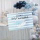 Light blue and white watercolor striped background, celebrating a baby boy. Cute, light blue whale with white seashell in the background just below "baby memory book" text. Baby's name template created just for you!