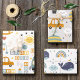 Add a cute custom touch to your newborn's baby shower with this adorable baby boy wrapping paper sheet set. Gift wrap sheets have a colorful pattern of a sun, moon, stars, baby carriage, toys, rocket ship, car, rocking horse, and more. Blocks spell out Baby Boy and there's a place to add the first name of your new little one. There are also whales, rainbows, and hot air balloons.