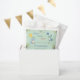 Celebrate your little boy's Dinosaur 1st Birthday Party with these delightful, personalized party favor bags that capture the charm of prehistoric fun! Each favor bag is adorned with cute dinosaurs in soft blues and greens, playfully clutching joyful polka dot blue and yellow balloons. The theme resonates with "stomp chomp roar" excitement, bringing dinosaurus fun to life against a pastel green background scattered with soft green leaves and foliage. These favor bags are the perfect memento for guests, expressing a heartfelt "thank you" for sharing in your precious baby boy's First Birthday.