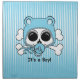 Cute baby boy skull and crossbones with blue hat and pacifier.