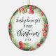 This cute "Baby Bump's First Christmas" ornament is an adorable way to celebrate your coming baby. Features a watercolor holiday wreath with red berries and modern calligraphy. Personalize with year. Design is the same on front and back of ornament. Makes a great Christmas present!