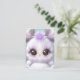 The cute baby bunny graphic is surrounded by white and purple eyelashes on a petal background.