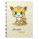 On this notebook you see a cartoon of a young leopard with big green eyes; the ideal gift for schoolkid or student