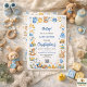 Adorable boy baby shower invitation with cute baby clothes and toys design. Perfect for a sweet baby boy celebration. Easy to personalize.