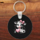 Cute Baby Cow With Nk Coquette Bow Holding Heart Keychain