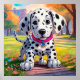 AI image of cute baby dalmatian dog with happy expression at urban park colorful digital image illustration