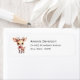 Address labels with an illustration of an adorable baby deer. Big eyes big ears with a large head and little brown antlers. Wearing a big red bow.