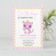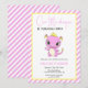 Cute Baby Dragon Pink Stripes Birthday Invitation