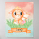 Cute watercolour, orange baby dragon is sitting in the grass.