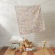 A cute hand painted print on bab blanket. It features cute ducks and ducklings in a garden with spring fresh flowers and little water ponds for ducks to swim.