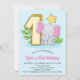 Cute Baby Elephant 1st Birthday Party Invitation