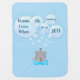 A beautiful design of a cute little gray baby Elephant standing in a puddle of soapy water happily blowing bubbles above his head. The bubbles have space for you to personalize the baby blanket with details such as Name, Date of Birth and Weight. This would make an adorable addition to any nursery decor.