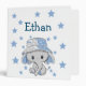 Adorable baby elephant sitting happy, with his little hat and stars.