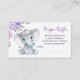 Cute Baby Elephant diaper raffle ticket, purple Enclosure Card