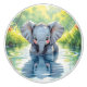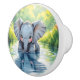 A knob for a dresser, cabinet or dresser drawer with an adorable baby elephant sitting on the ground looking at his own reflection in the river. Cute for a baby nursery or child's room.