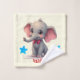 An adorable baby elephant wearing a red bow stands between two blue stars on this bath towel set for a toddler or baby.