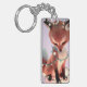 A keychain with a cute little baby fox looking down with fairy lights wrapped around it. A soft and sweet Christmas mood.
