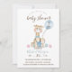 Cute Baby Giraffe Balloon Stripes Baby Shower In Invitation