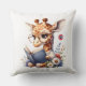 Cute Baby Giraffe Reading Book with Glasses Throw Pillow